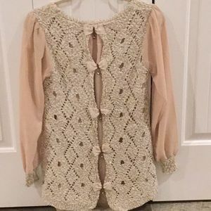 Beautiful nude color evening blouse with gold threads. Stunning chiffon lining.