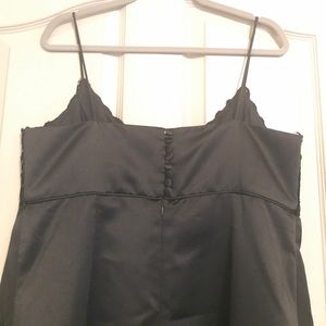 Floor length black satin dress with button up detail in the back and zipper
