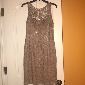A stunning beige Adrianna Papell dress in the size 10! Perfect for a homecoming or a date night!!