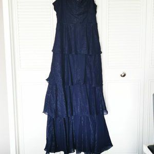 Very gorgeous long dress, beautiful starry dark blue, with a bow on the chest. Suitable for high-end banquets, it also looks very good with a white suit jacket!