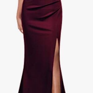 Beautiful and forgiving dress to wear for a formal event. The ruching is flattering for all figures and the material is thick, but not bulky. My favorite formal dress I’ve ever worn. It was so comfortable.