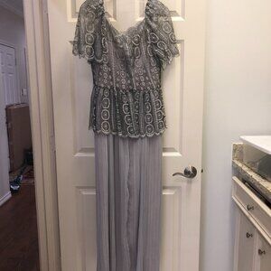 Gorgeous two-piece silver gray dress in size 16 from Nieman Marcus. No rips or stains. Simple but elegant, making it perfect for any occasion which calls for dressing up: mother-of-the-bride, prom, formal dinner, etc.