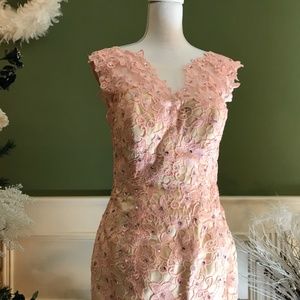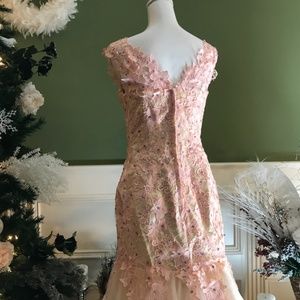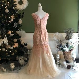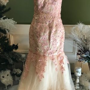 NWOT, in package & includes bead pack ABSOLUTELY !! gorgeous stunning pink & ivory mermaid gown - pink appliqué with a cream color tulle. My dresses do tend to run small so please verify your measurements before ordering. Look at the last pictures posted on how to measure and the measurement chart. This dress has little to no give with a zipper. This is a size 10 so it has measurements of bust 36.5” , waist 29.5” , hips 39.75” if you have any questions just message me