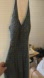 Formal evening gown, two splits on each side mid leg. Good condition, backless, crisscross straps in the back. Smoky grayish blue. Beaded
