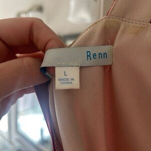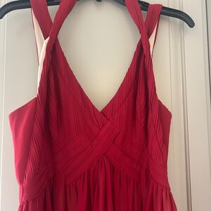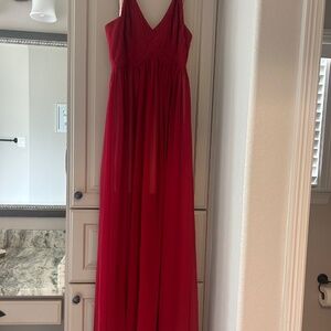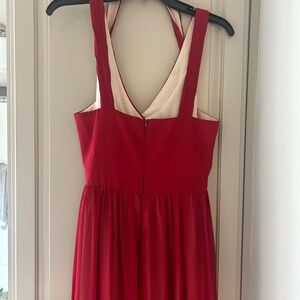 Formal long dress, size Large, cream knee length skirt with long red chiffon overlay over top