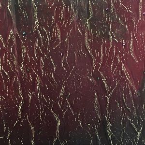 Burgundy and black iridescent with beading and gold shimmer. Seamstress took out corset as it was too constricting. Never wore because daughter changed her wedding colors! Size 8 fits like a 6. Wish I had somewhere to wear it! Selling cheap since removed corset which had the original tags.