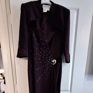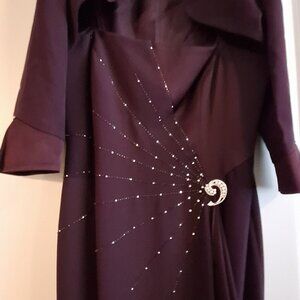 Long formal dress with bolero jacket, deep purple, worn 1x at son's wedding, size 14, bought at bridal shop. Perfect condition, no rips/tears.