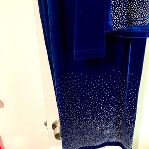 Two pieces. Top and long skirt with silver adornments that looks like snow.