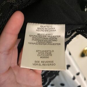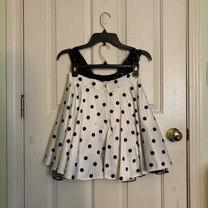Sequin/lace black top and black and white polka dot skirt