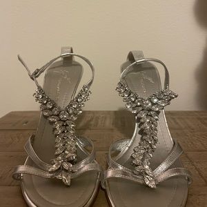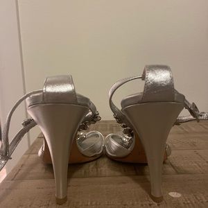 Formal silver and rhinestone heels. Womens size 8, size 38.5. Made in Italy. In good used condition. Prom.