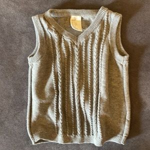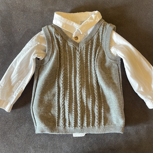 Sweater vest and button down long-sleeved shirt.