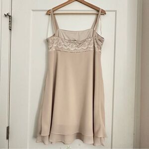 Formal Neutral Prom Wedding Sleeveless Lace Y2K Beaded Flowy Sheer Mini Dress