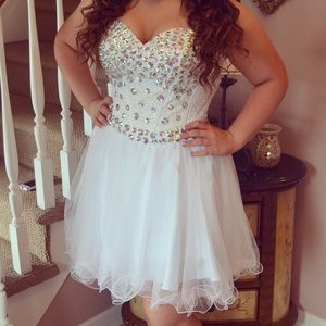 White dress with crystals! Warn only once! The back is a corset and very adjustable! No alterations were made!