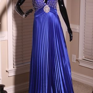 Unique pleated full length prom gown, size 6, Beaded top with Medallion. New w/tags