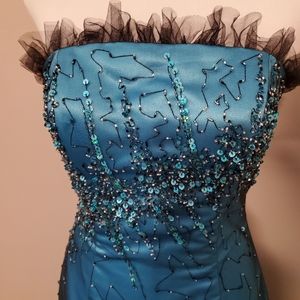 Xcite Prom, Size 4, Turquoise Blue & Black, Sequined, Unique, Beautifully Designed