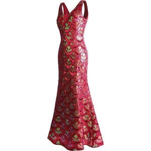 ✨❤️ Formal Red Sequin Mermaid Column Art Deco 1920s Long Gown Maxi Dress L NWT
