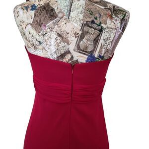 David's Bridal Formal Red Strapless Sweetheart Empire Waist Gown Long Maxi Dress sz S in EXCELLENT condition! Zips up the back and adjusts at bra line. No size or fabric tags. Chiffon like fabric. No stretch. See photos for details and approximate measurements.