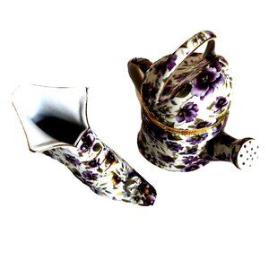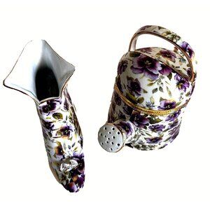 Lot of 2 : Formalities Baum Violet Chintz Purple Floral Trinket Box + Victorian Booth Vase Vintage