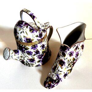 Formalities Baum Violet Chintz Purple Floral Trinket Box + Victorian Booth Set 2