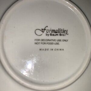 This elegant miniature tea set by Formalities from Baum Bros features a delicate rose pattern. The porcelain pieces, intended for decorative use, include cups, saucers, a sugar bowl, creamer, and a decorative tray. The intricate floral design and gold trim evoke a timeless charm, elevating any collection or display.