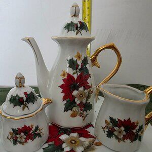 Formalities By Baum Brothers Poinsettia Mini Tea Set Gold Trim