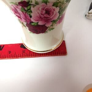 Add a touch of vintage charm to your home decor with this Formalities Style beautiful ceramic basket vase. Featuring a lovely red and pink rose design, this vase is perfect for displaying your favorite flowers or as a standalone decorative piece. The gold accent handle adds an elegant touch, making it a stunning addition to any room.