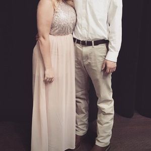 Beautiful baby pink prom/formal dress. Sparkly silver on top. So comfortable!