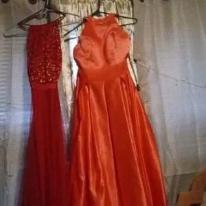I have 4 dresses all size 10 blue,two reds and a pink.floor length ball gowns