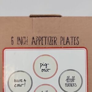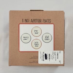 Formation Brands White Red Set Of 4x Appetizer Plates Black Text "Pig Out" NWT
