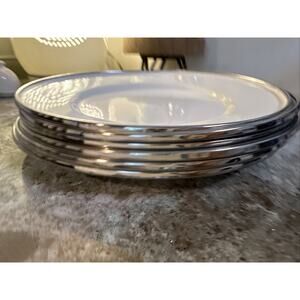 This beautiful six piece set of Formation Enamelware white salad plates is sure to make your next gathering a success! This set is preowned and does display some signs of wear as noted in the photographs.