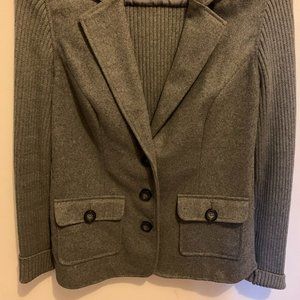 This Medium gray knit sweater jacket is of medium weight and is in excellent condition.