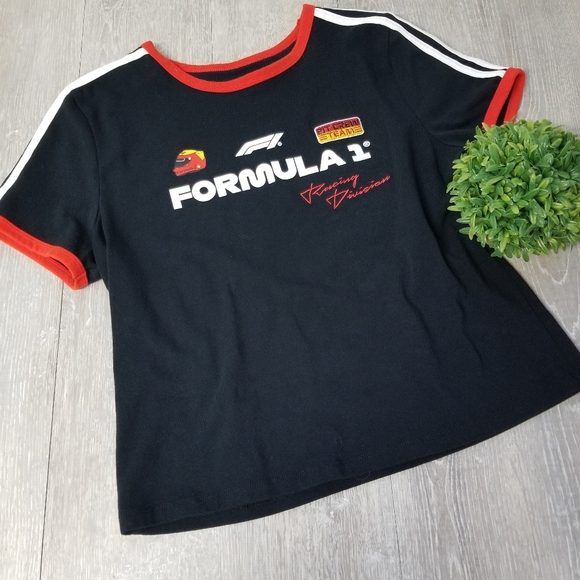 This is a super cool Formula 1 racing top by Hybrid Apparel. Has embroidered patch that says "pit crew team" and the words "racing division" also. Size large. Slightly cropped. Measurements are included in photos. Like new condition