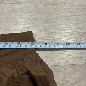Waist around 17 inches (elastic + drawstring)