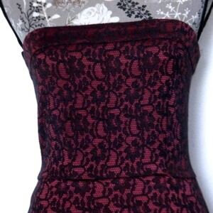 Formula X Dress Juniors 9 Strapless Burgundy Black Lace Bodycon Party Cocktail Club Prom Holiday Dance Stretch NWT formula x dress juniors strapless burgundy black lace bodycon party club goth romantic floral stretch tight fitting 80s 90s y2k sexy homecoming prom cocktail dance holiday rave vintage new with tags