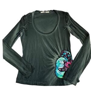 Fornarina LTD Vtg Y2K Tie-dye Scoop Neck Top Blouse Lace-up Shoulders Sequinned