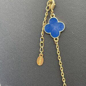 Fornash Blue Enamel Station Four Leaf Flower Chain Necklace Gold Tone 40 Inches