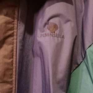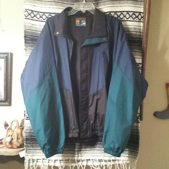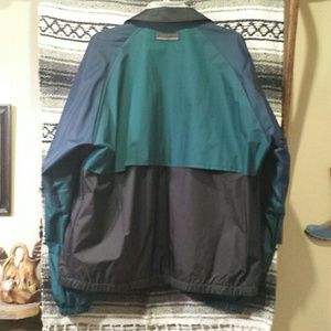 Lightweight windbreaker style Forrester's Performance Outerwear jacket designed to hold in body heat while keeping out moisture! NWOT! Navy blue, green and black. Not heavy or bulky! Lining is netlike and soft. Foldover pockets designed to keep things from falling out easily. See pic #6.