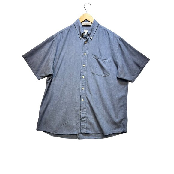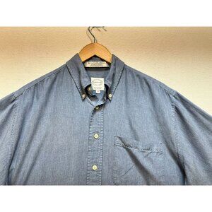 Forsyth Of Canada Mens Chambray Button-Down Shirt Large Blue Short Sleeve Casual