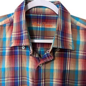 Forsyth Of Canada Mens Shirt Short Sleeve Non-Iron XL Purple/Orange Plaid Preppy
