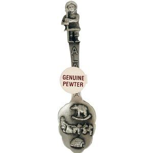 Fort Alaska Souvenir Pewter Spoon Inuit Bear Igloo Sled Dogs Alaskan Collectible