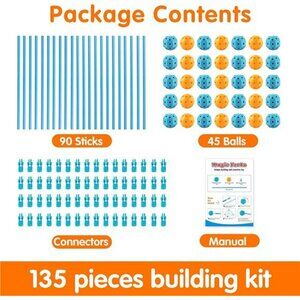 - WHAT'S IN THE PACKAGE - Magic Forts comes with 45 balls, 90 sticks and 180 connectors. Comes with gift color box packaging. It also comes with a manual, many fort options are shown & from there you can let your imagine go wild.