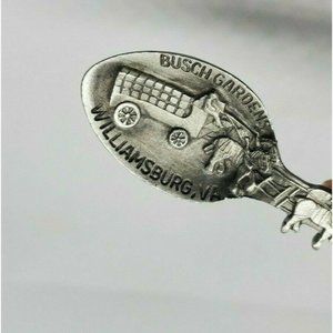 Enhance your home décor with this Fort Busch Gardens Williamsburg VA eagle embossed pewter mini spoon. This vintage spoon adds historical charm and elegance to any display.