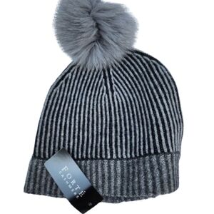 Forte Cashmere silver graympom pom hat NWT