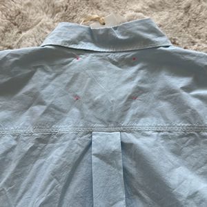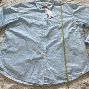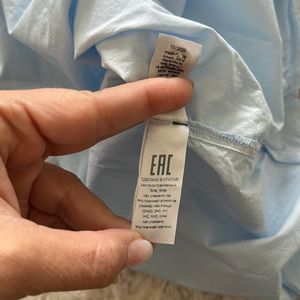 This button-up shirt features a classic straight cut in a light blue hue, showing Forte Forte's focus on sleek and timeless pieces. It is crafted from 100% cotton and finished by a curved hem.