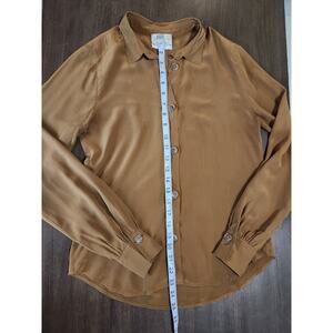 Forte Forte Women's Brown Silk Button Down Shirt Size I Small Long Sleeve Top
