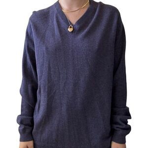 Forte Mens Purple 100% Cashmere Soft V Neck Preppy Sweater Sz L