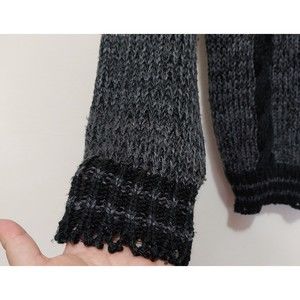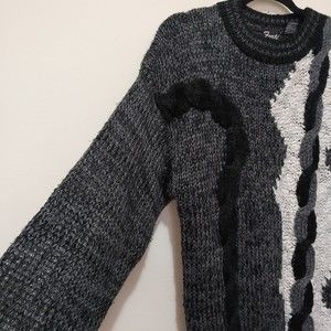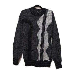 Forte Men's Vintage Chunky Knit Sweater Size Medium Black Grey Cream A02