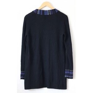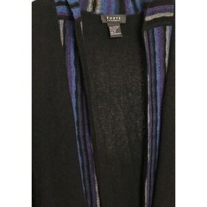 Forte Womens 100% Cashmere Open Cardigan Sweater Long Size Small Black Blue Knit