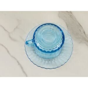 Fortecrisa Azure Ice Blue Glass Tea Cup Saucer 70's Interior Ribbed 5" Mexico x2