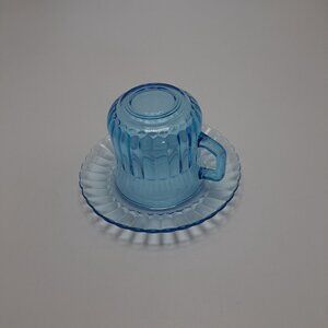 Fortecrisa Mexico Ice Azure Blue Ribbed Glass Cup & Saucer Set